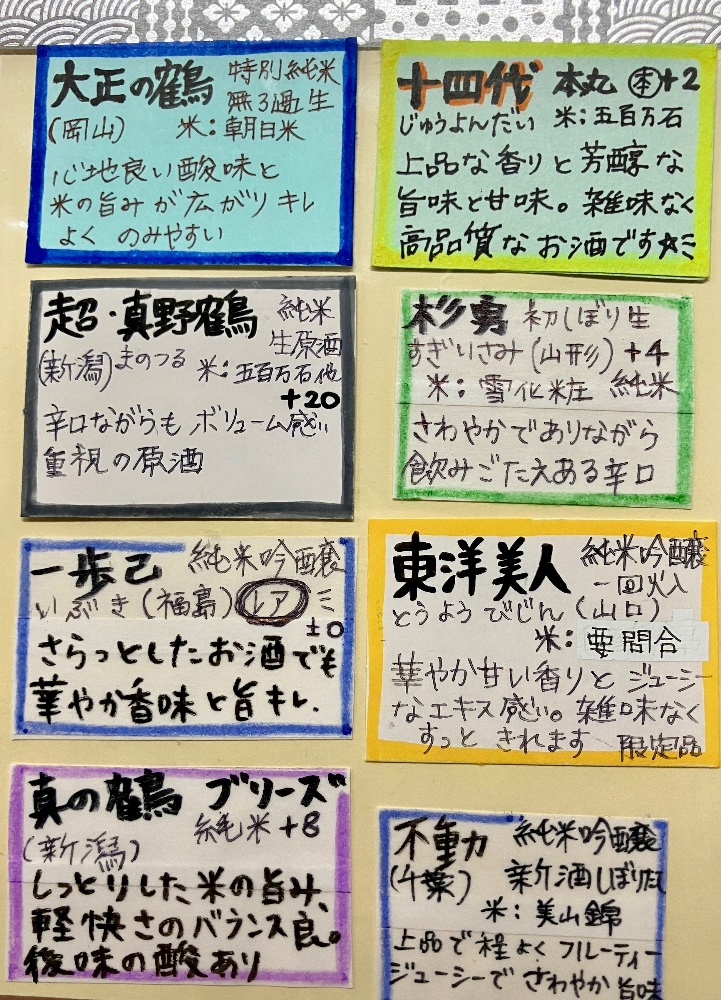 30種類くらいの日本酒をご用意しております。お料理と合わせてどうぞ!